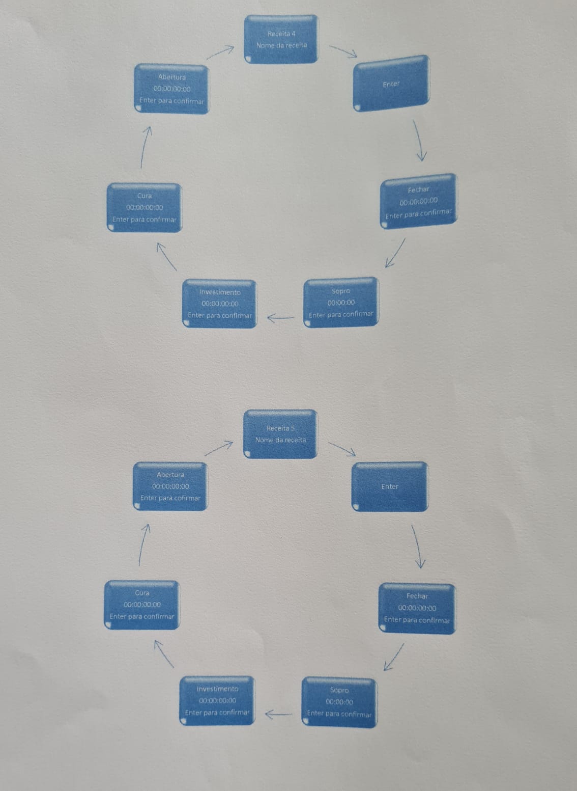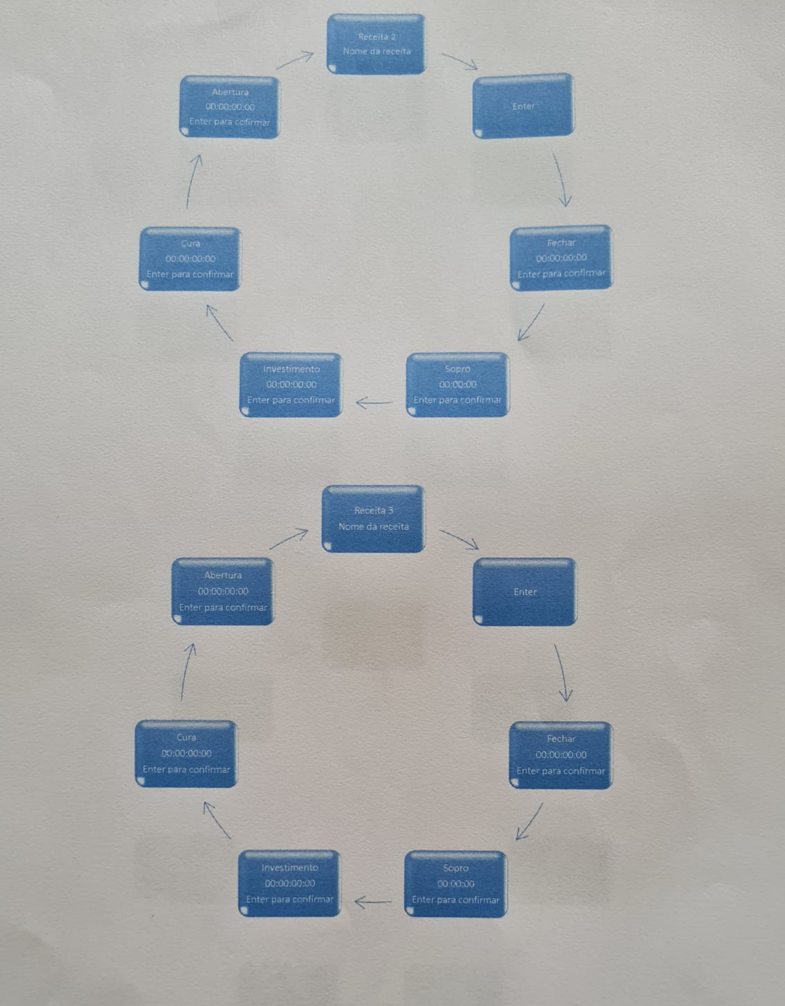 *Implementação de sistema de receitas com capacidade para até 100 receitas configuráveis;