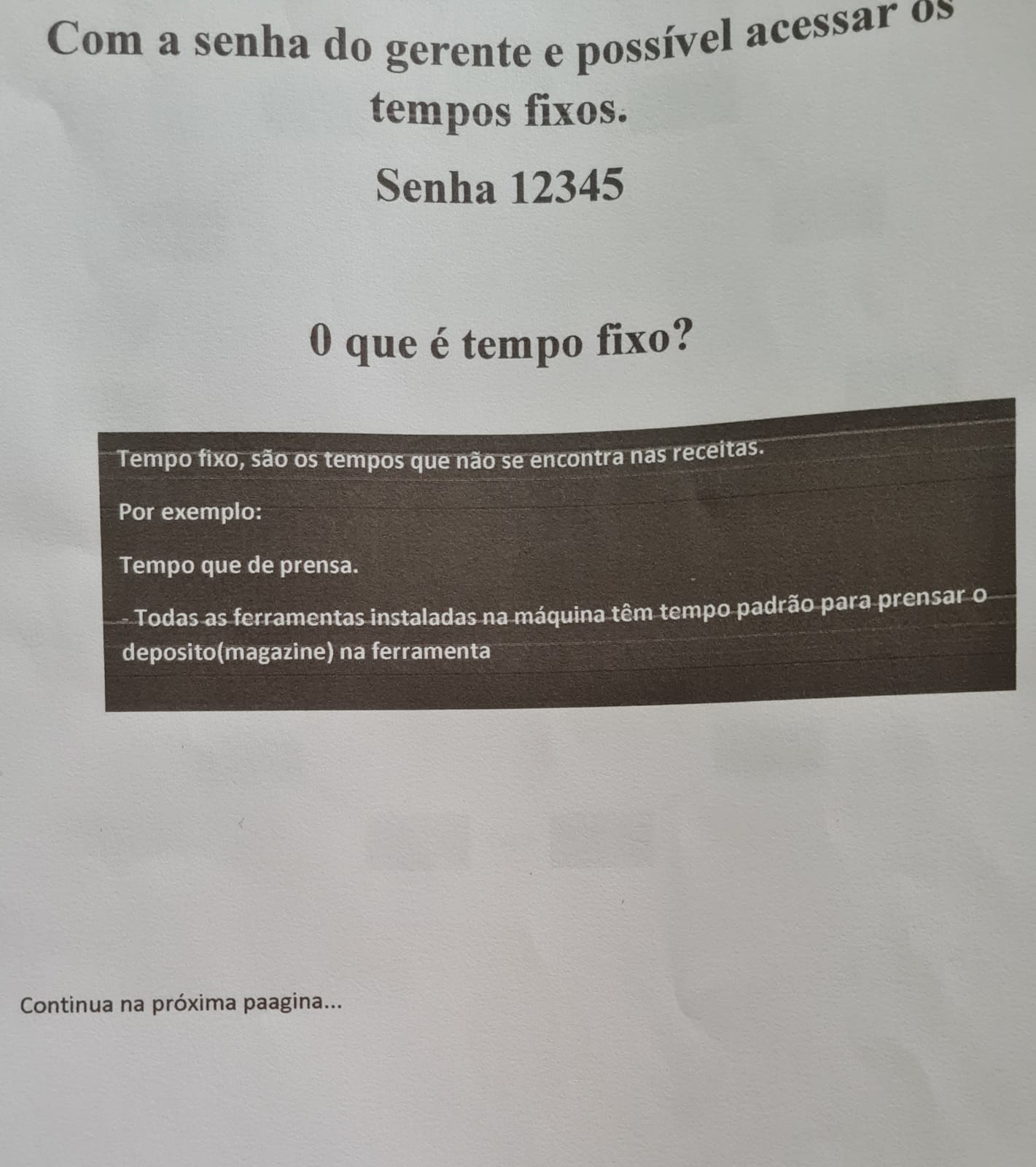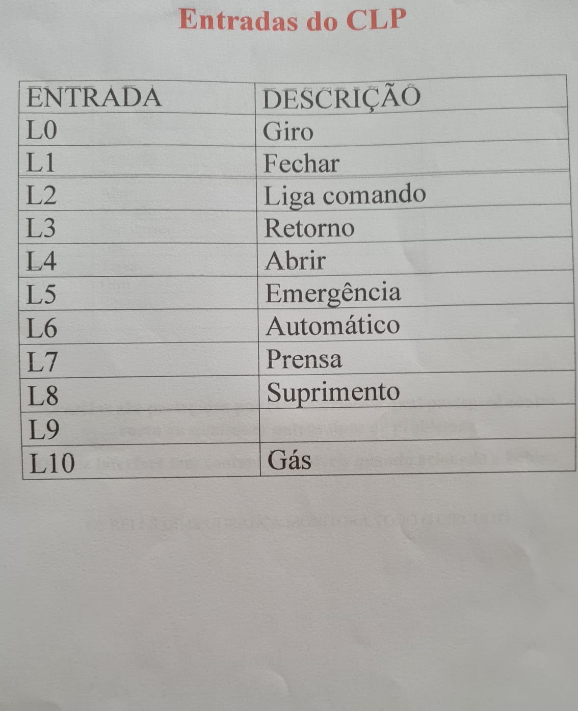 Dados da programação do CLP: