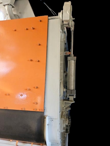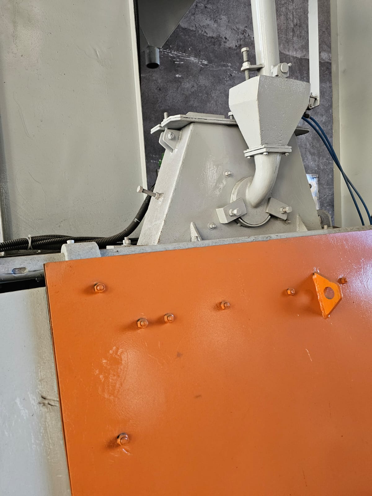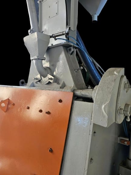 4723 Jato de granalha 27 x 36 marca Wheelabrator cap. 350 kg esteira Borracha. Turbina Nova TC300 com motor novo. Dimensões porta: 880mm (comprimento) x 600mm (Profundidade) x 740mm (Altura). Altura total máquina 4.200m. Peso total: Aproximadamente 4 ton. Porta com acionamento, por Pistão de acionamento Pneumático, novo. Coletor de pó tipo mangas. Observação: Painel em 220V.