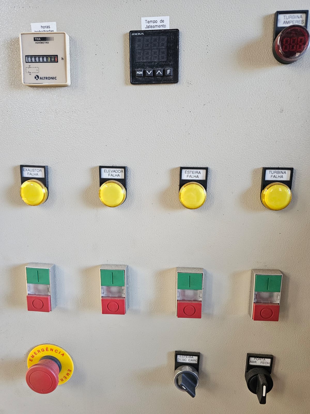 Potência dos Motores Motor da turbina 15CV / 1.750 RPM (NOVO) Esteira Motoredutor 1CV / 1.680 RPM Elevador NOVO Motoredutor 1CV /1.730RPM (NOVO) Coletor Exaustor 5CV /3.500 RPM Coletor Batedor 0,5CV / 1.700 RPM Total 22,5CV |