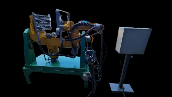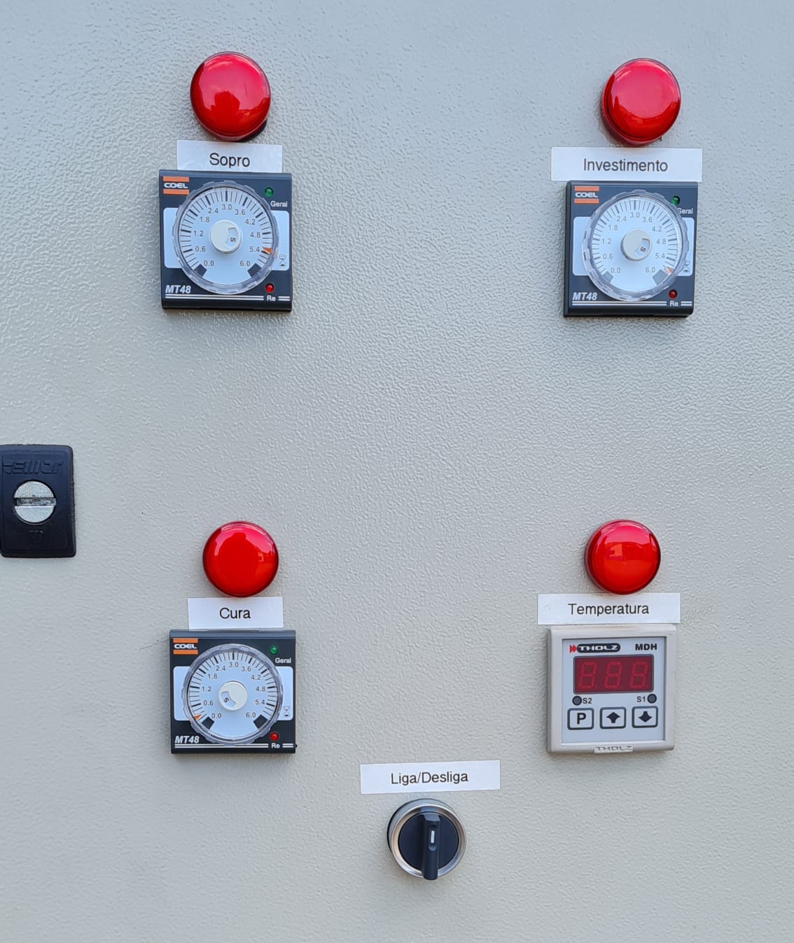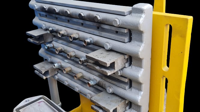 Placas de Montagem do Ferramental: 380 x 260 mm – Distancia máxima entre placa de moldagem: 320 mm – Peso máximo do ferramental: 90 Kg. – Capacidade do deposito de areia: 13 Kg. – Peso liquido da máquina; 440 Kg.