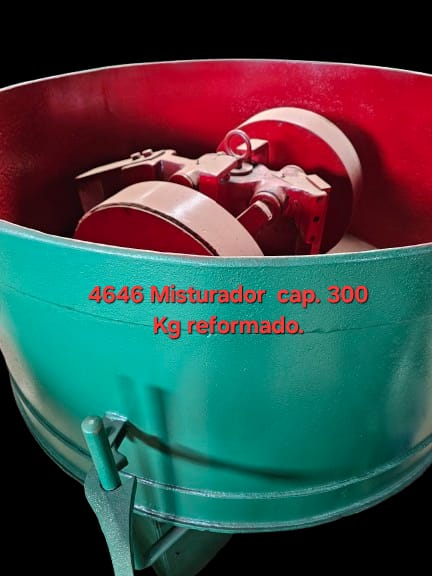 | Ok ZR4646 Misturador de areia novo REFORMADO marca JF Machine, com mós, capacidade 300kg. Motor 15CV/ 1.150 tensões 220/380/440/760V, 60HZ – capacidade de produção/ hora aprox.. 3 toneladas/h – Produção baseada na densidade da areia verde para fundição, construído em aço SAE 1020 e acoplamento especial. PRAZO DE ENTREGA IMEDIATO