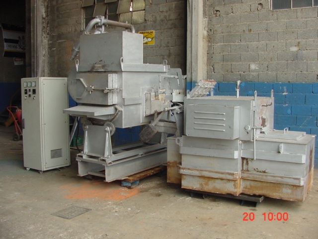 4308 Forno de Fusão a gás marca Morganite, volume de Aluminio liquido aproximado 250kg, temp. máxima aproximadamente 800°C acompanha forno de espera.
